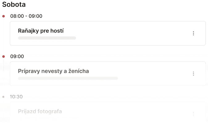 Naplánuj celý svadobný víkend do posledného detailu – jasne a prehľadne.