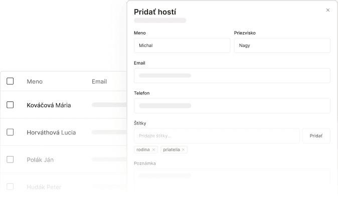 Kontakty, odpovede na dotazník, doprovody a mnoho iného. Údaje o hostoch budeš mať pod kontrolou.